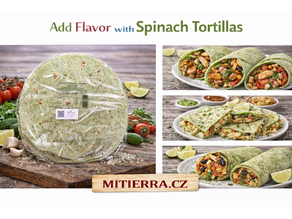 Ambiente Spinach Tortillas are soft wheat tortillas enriched with spinach, offering a mild flavor and flexible texture. With a 30 cm diameter, they are ideal for generous wraps, burritos, and creative meal preparations. Their pliable consistency makes them easy to roll and fold without breaking, making them suitable for both hot and cold dishes.