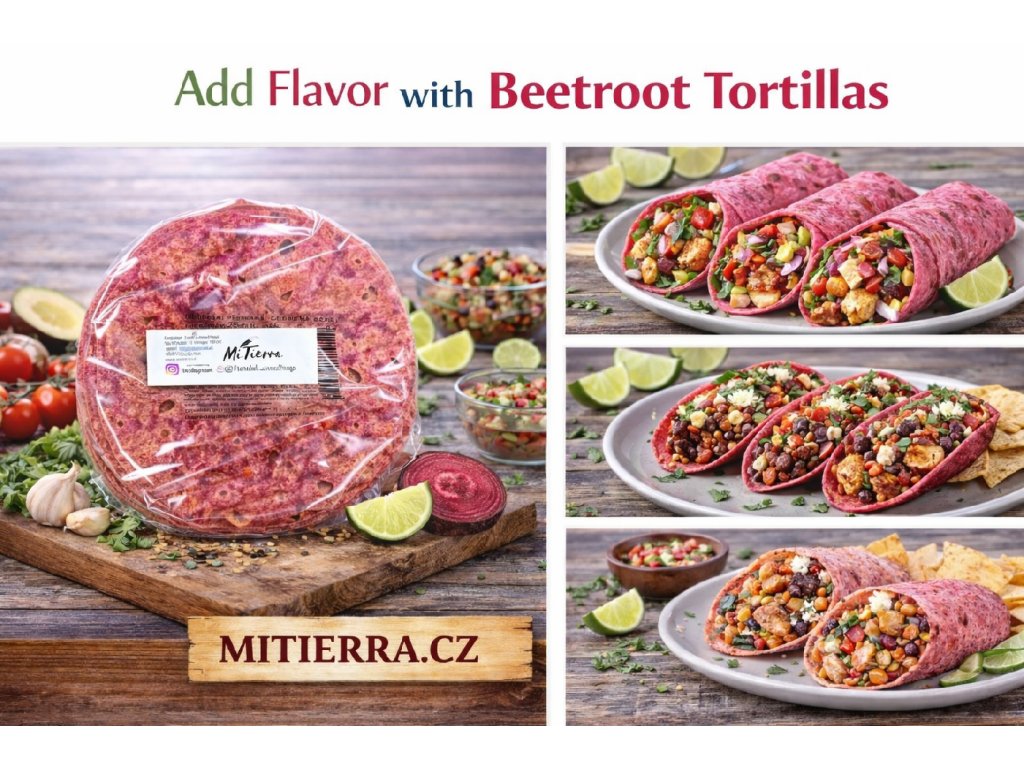 Ambiente Beetroot Tortillas are soft wheat tortillas enriched with beetroot, giving them a distinctive color and mild, slightly sweet flavor. With a 25 cm diameter, they are practical for everyday wraps, burritos, and creative meals. Their flexible texture allows easy rolling and folding without cracking, making them suitable for both hot and cold dishes.