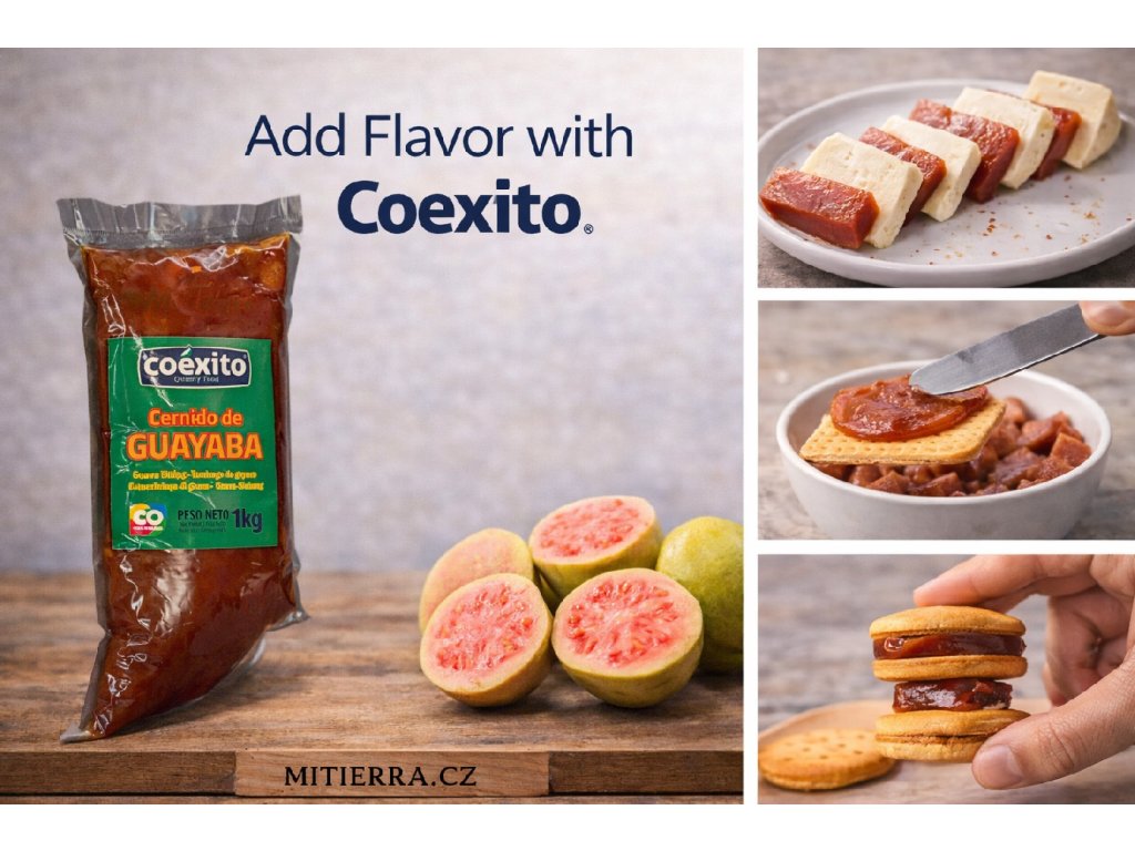 Coexito Cernido de Guayaba is a smooth guava fruit paste made from cooked and strained guava pulp. It has a dense, spreadable texture and a naturally sweet, fruity flavor. Suitable for professional and home baking, it can be used as a filling for pastries, layered in cakes, or served as a sweet accompaniment.