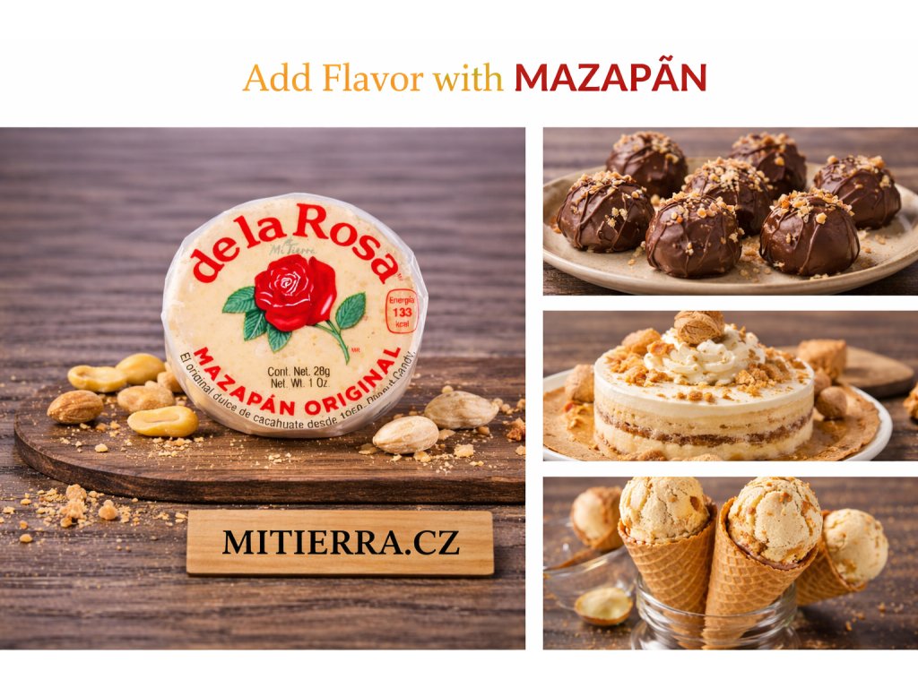 De la Rosa Mazapán Original is a traditional Mexican peanut candy made from ground peanuts and sugar. It has a soft, crumbly texture and a rich, sweet peanut flavor. Individually wrapped, it is suitable as a convenient sweet snack or as part of a varied confectionery assortment.