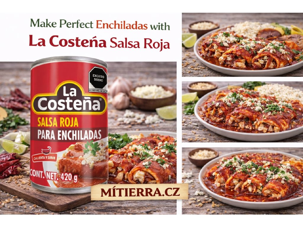 La Costeña Salsa Roja para Enchiladas is a classic Mexican red sauce made with tomatoes and chili peppers, specially crafted to prepare authentic enchiladas. Its rich, mildly spicy flavor and smooth texture make it ideal for coating tortillas before baking or simmering. Simply heat and serve, or use as a versatile base to enhance traditional Mexican recipes with deep, homemade-style taste.