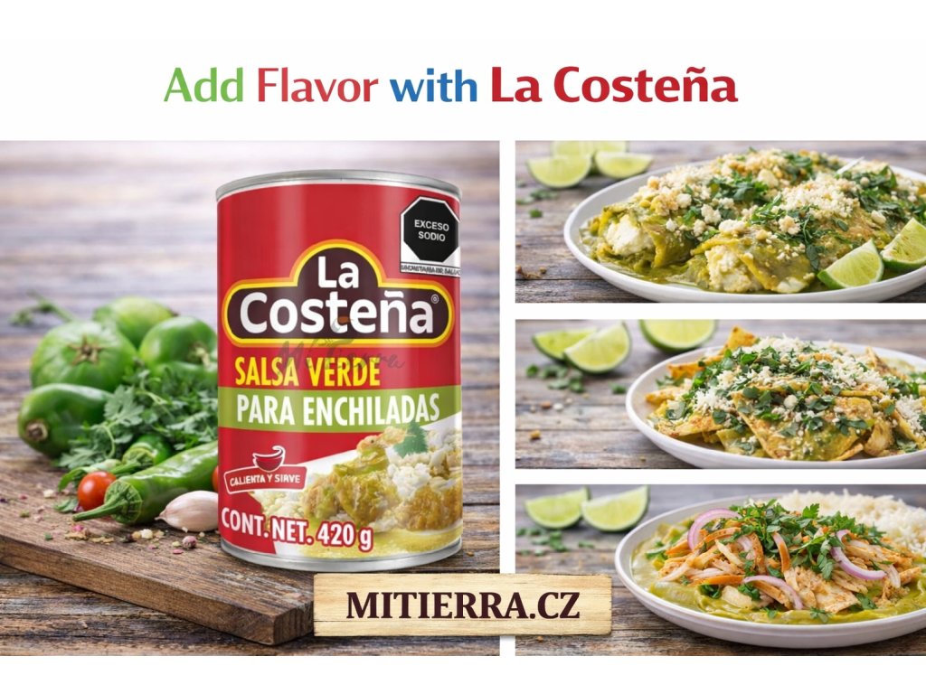 La Costeña Green Enchilada Sauce is made from tomatillos and green chili peppers, offering a fresh, tangy flavor with balanced heat. Designed especially for enchiladas, it provides a smooth texture and authentic Mexican taste. Simply heat and serve to create traditional dishes with rich flavor and vibrant color.