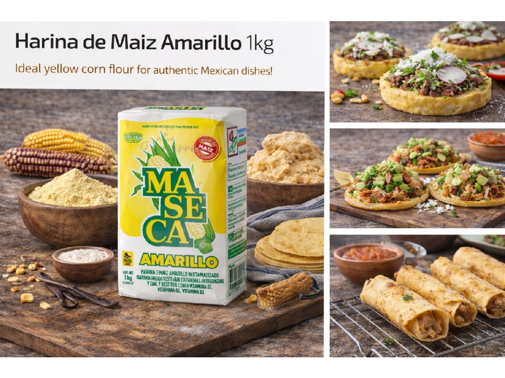 Maseca Harina de Maíz Amarillo is a nixtamalized yellow corn flour made in Mexico, known for its rich corn flavour and authentic texture. It is naturally gluten-free and easy to work with, delivering reliable results for traditional recipes.