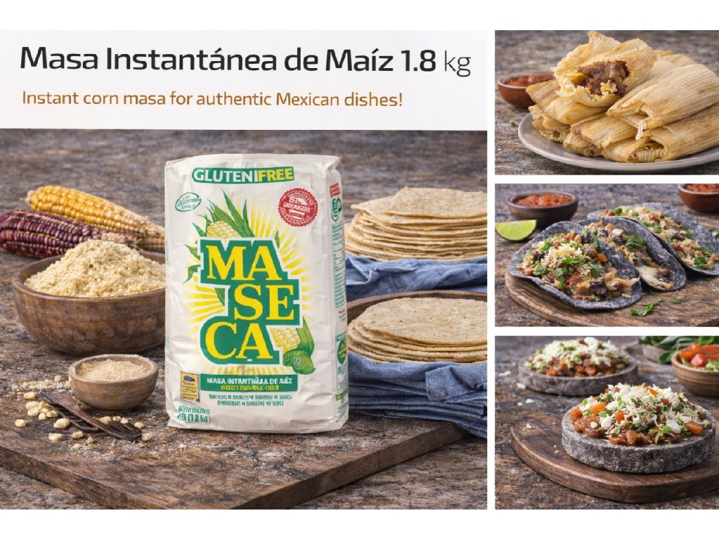 Maseca Masa Instantánea de Maíz is an instant nixtamalized corn masa from Mexico, offering authentic corn flavor and smooth, workable texture. Naturally gluten-free, it allows fast and consistent preparation of traditional Mexican foods.