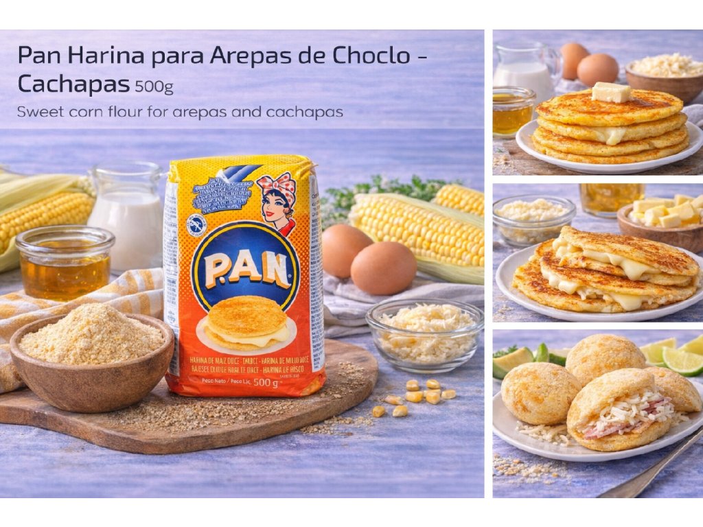 PAN Harina para Arepas de Choclo is a sweet corn flour made for traditional Colombian and Venezuelan recipes. It delivers a naturally sweet flavor and soft texture, perfect for authentic corn-based dishes.