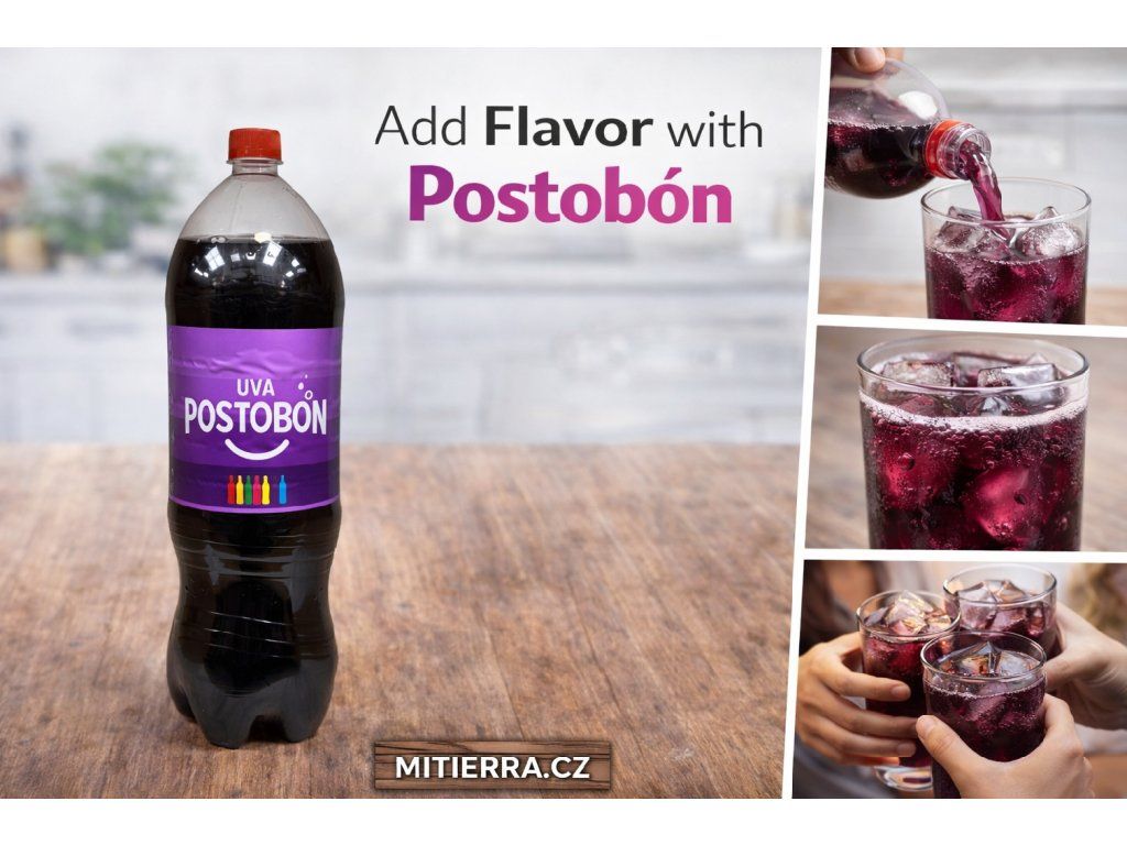Postobon Uva is a carbonated soft drink with a sweet grape flavor and vibrant color. It offers a refreshing sparkling taste suitable for serving chilled. Commonly enjoyed on its own or alongside meals, it is ideal for sharing at gatherings and everyday consumption.
