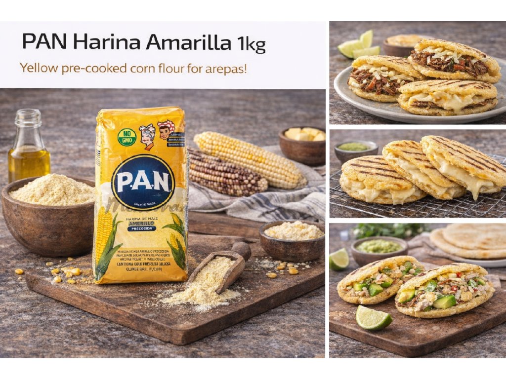 PAN Harina Amarilla is a pre-cooked yellow corn flour, naturally gluten-free, widely used in Colombian and Venezuelan cuisine.