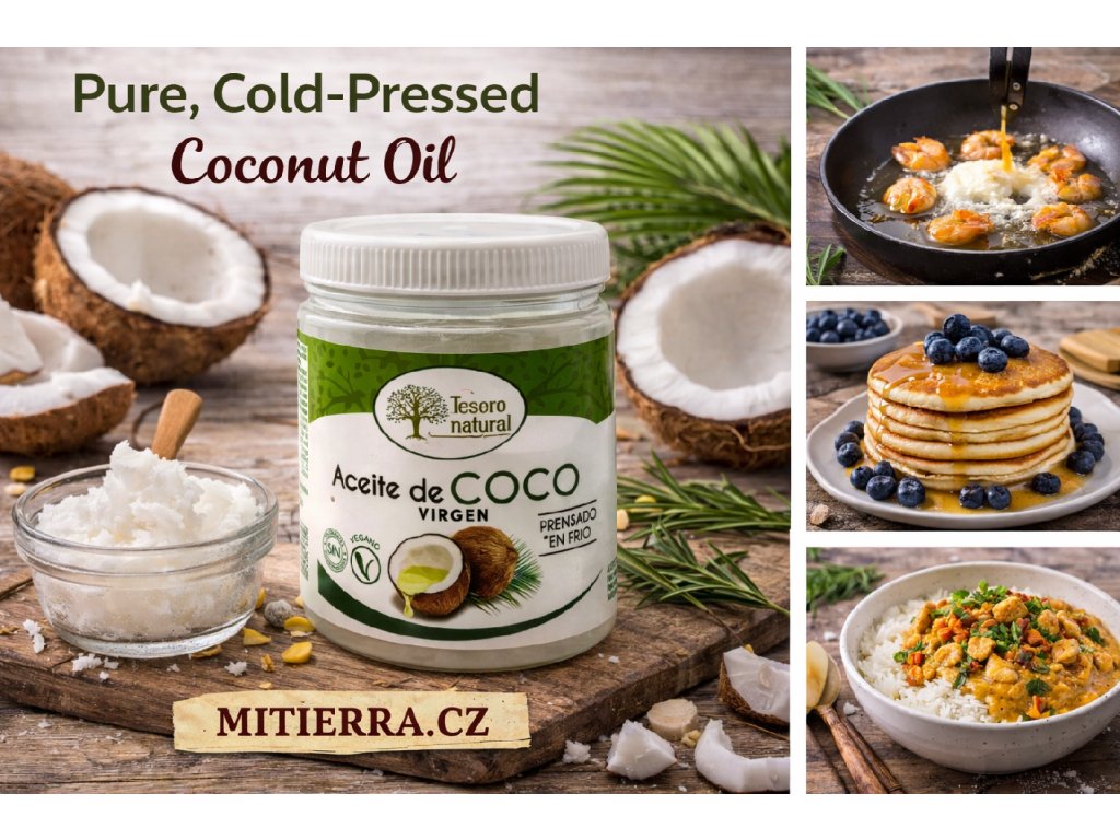 Cold-pressed virgin coconut oil with a mild aroma and pure taste. Suitable for everyday cooking, baking, and also for natural skin and hair care thanks to its nourishing properties.