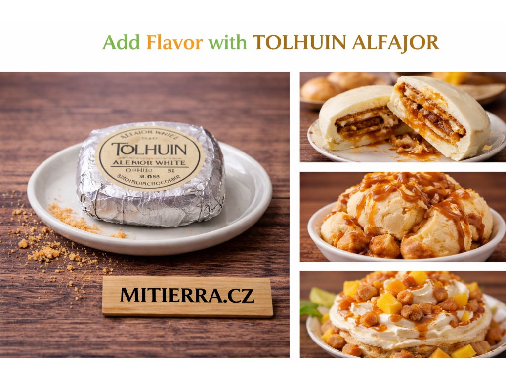 Tolhuin Alfajor White is a traditional sandwich-style cookie filled with dulce de leche and coated in white chocolate. It features soft biscuits and a smooth caramel filling, offering a balanced sweetness and creamy texture. Suitable as an individual snack, served with coffee, or presented as a small dessert.