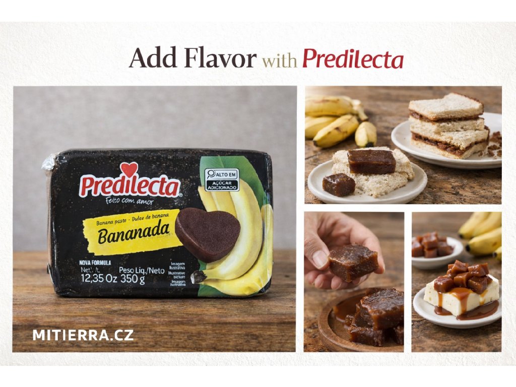 Tradiční brazilská sladkost z banánů s intenzivní ovocnou chutí a jemně želatinovou strukturou. Skvělá jako snack, doplněk k sýrům nebo jako součást dezertů. Nabízí autentický zážitek sladké Brazílie, který ocení děti i dospělí.Doplňkové parametry